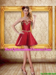 Cheap Sweetheart Red 2015 Dama Dresses with Ruffled Layers and Beading