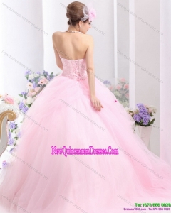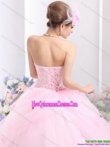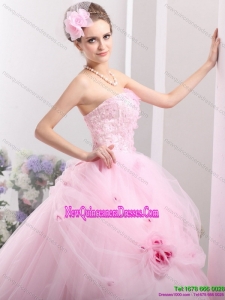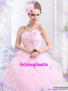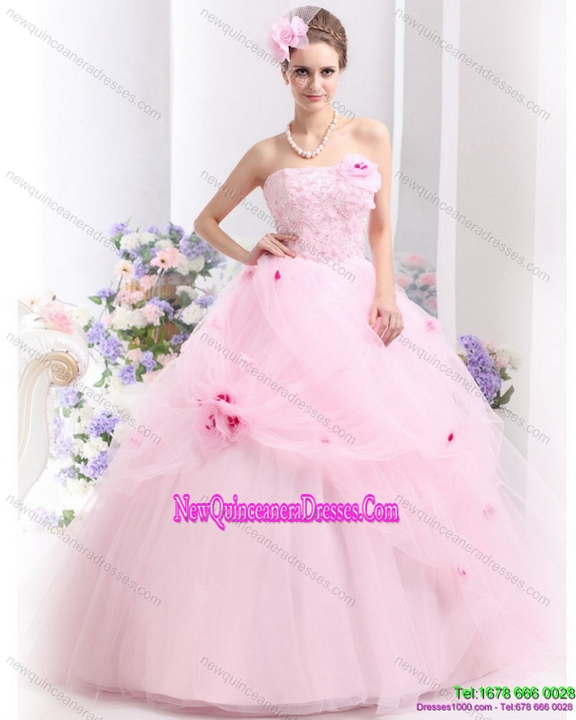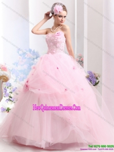 Fashionable Baby Pink Sweet Sixteen Dresses with Hand Made Flowers for 2015
