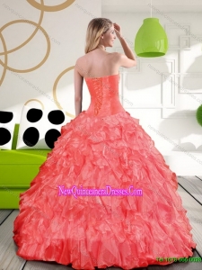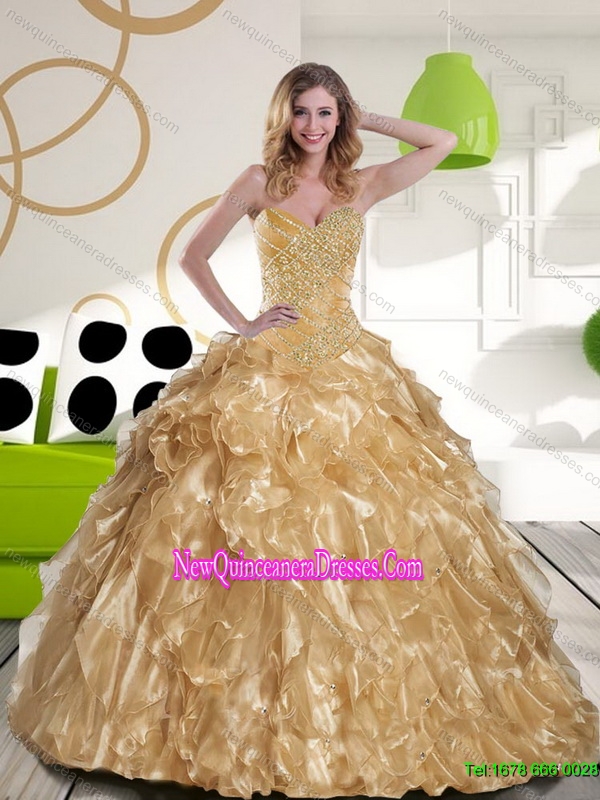 Fashionable Beading and Ruffles Sweetheart 2015 Champagne Quinceanera Gown