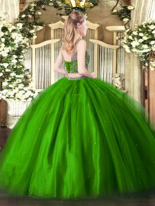 Sweetheart Sleeveless Tulle Ball Gown Prom Dress Beading and Ruffles Lace Up