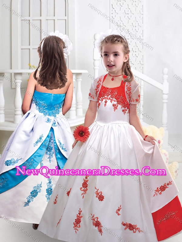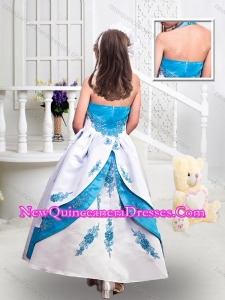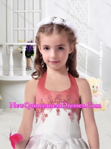 Fashionable Halter Top Satin Little Girl Pageant Dresses with Appliques