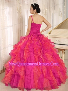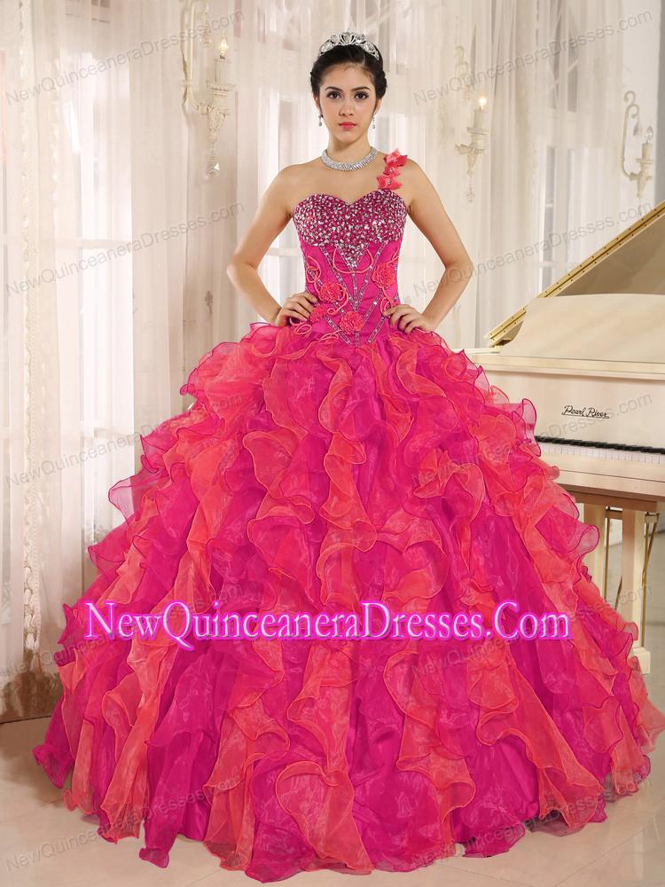 Fashionable Red One Shoulder Beaded Decorate Ruffles Quinceanera Dress In Spring
