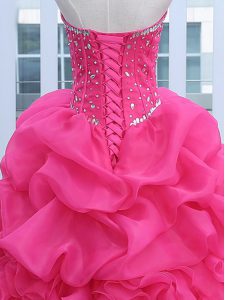 Fine Organza Sweetheart Sleeveless Lace Up Beading and Ruffles and Pick Ups 15th Birthday Dress in Hot Pink