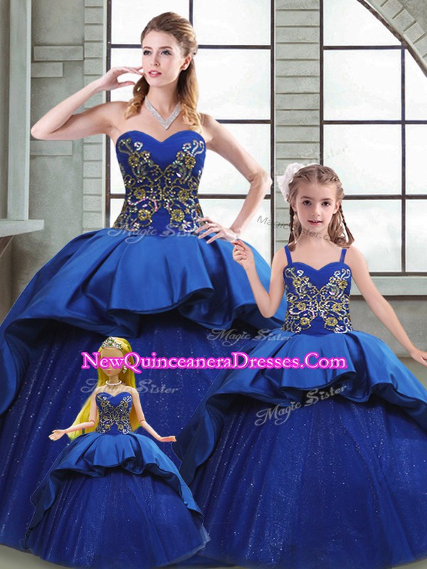 Blue Sweet 16 Quinceanera Dress Sweetheart Sleeveless Court Train Lace Up
