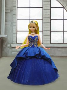 Glorious Blue Sleeveless Court Train Beading and Appliques and Embroidery Sweet 16 Quinceanera Dress