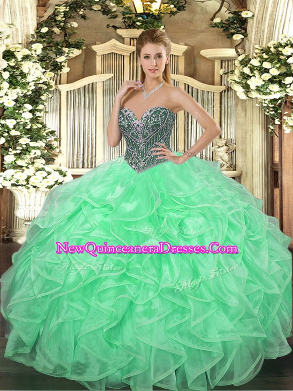 Floor Length Ball Gowns Sleeveless Apple Green Quinceanera Gown Lace Up