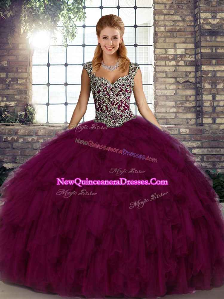 Floor Length Ball Gowns Sleeveless Dark Purple Quince Ball Gowns Lace Up