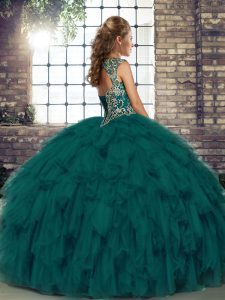 Brown Straps Neckline Beading and Ruffled Layers Child Pageant Dress Sleeveless Lace Up