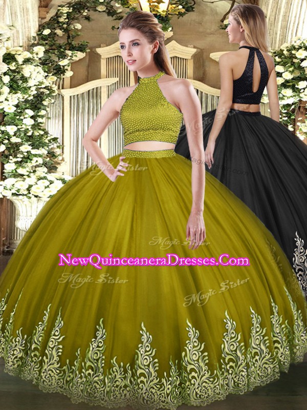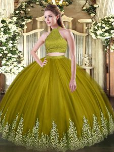 Floor Length Ball Gowns Sleeveless Olive Green Sweet 16 Dress Backless