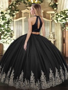 Elegant Dark Purple Halter Top Neckline Appliques Sweet 16 Quinceanera Dress Sleeveless Zipper