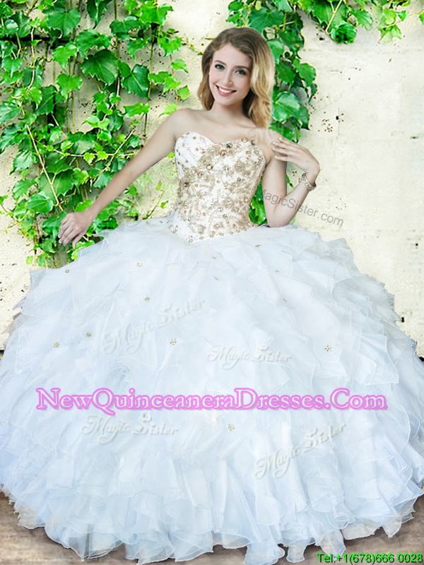 Floor Length Ball Gowns Sleeveless White Quinceanera Dresses Lace Up