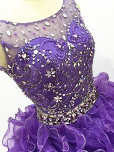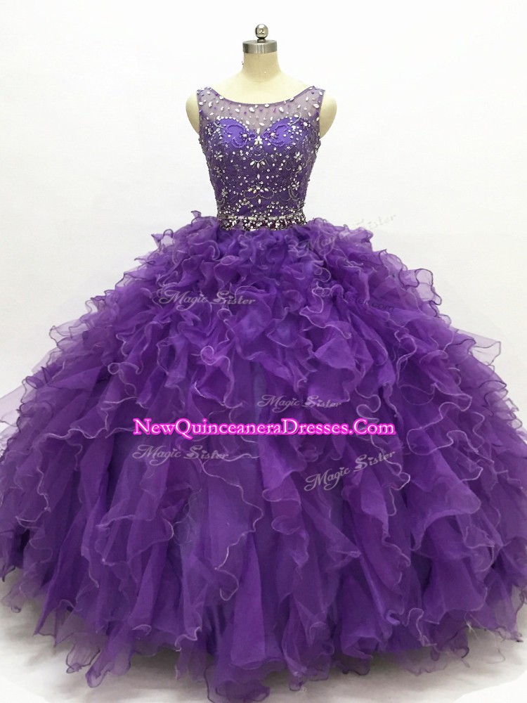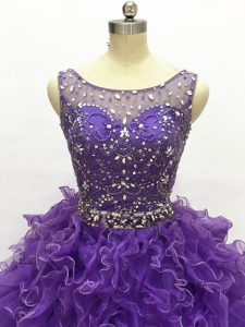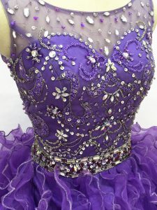 Floor Length Purple Quinceanera Dresses Organza Sleeveless Beading and Ruffles