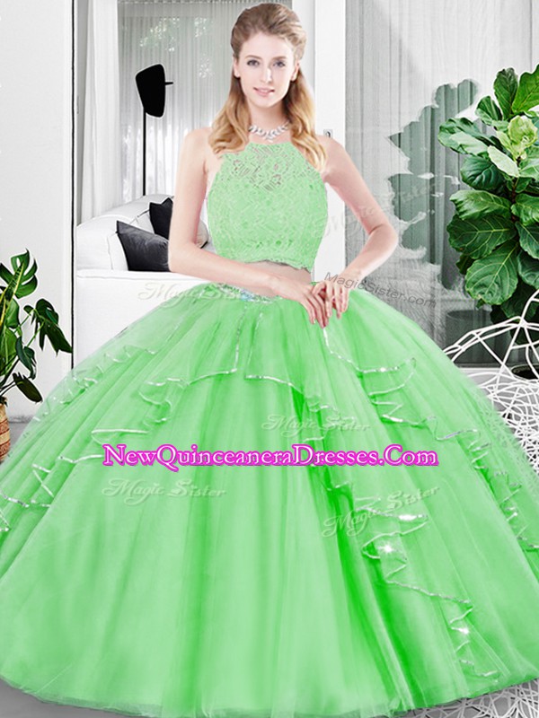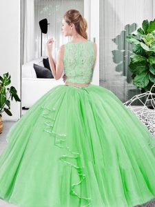 Floor Length Quinceanera Gown Tulle Sleeveless Lace and Ruffled Layers