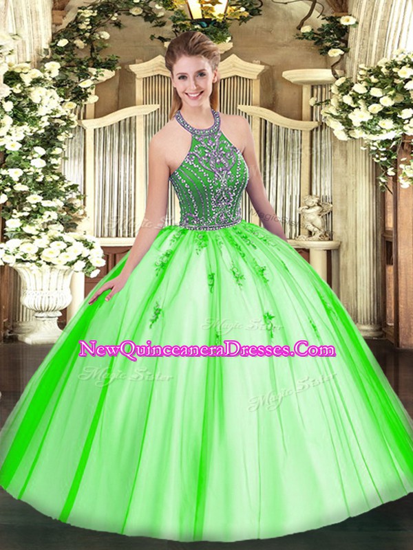 Floor Length Quinceanera Gowns Tulle Sleeveless Beading