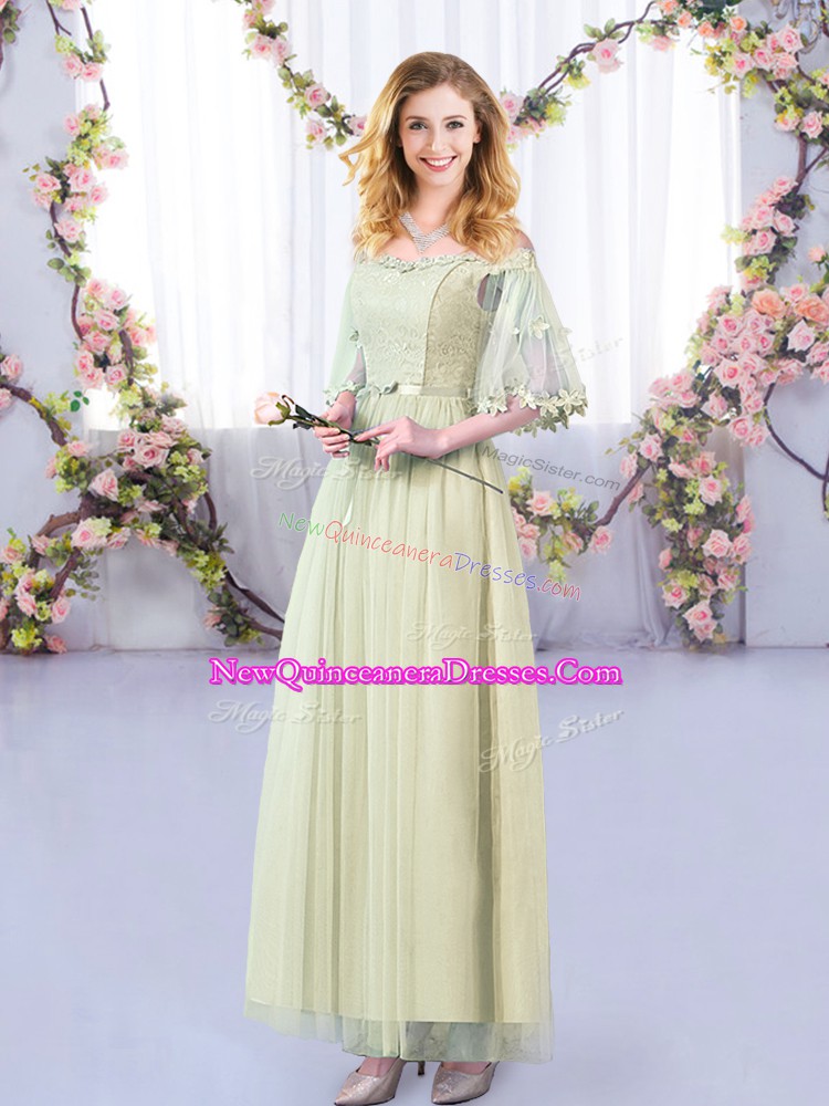 Floor Length Side Zipper Vestidos de Damas Yellow Green for Wedding Party with Lace and Belt