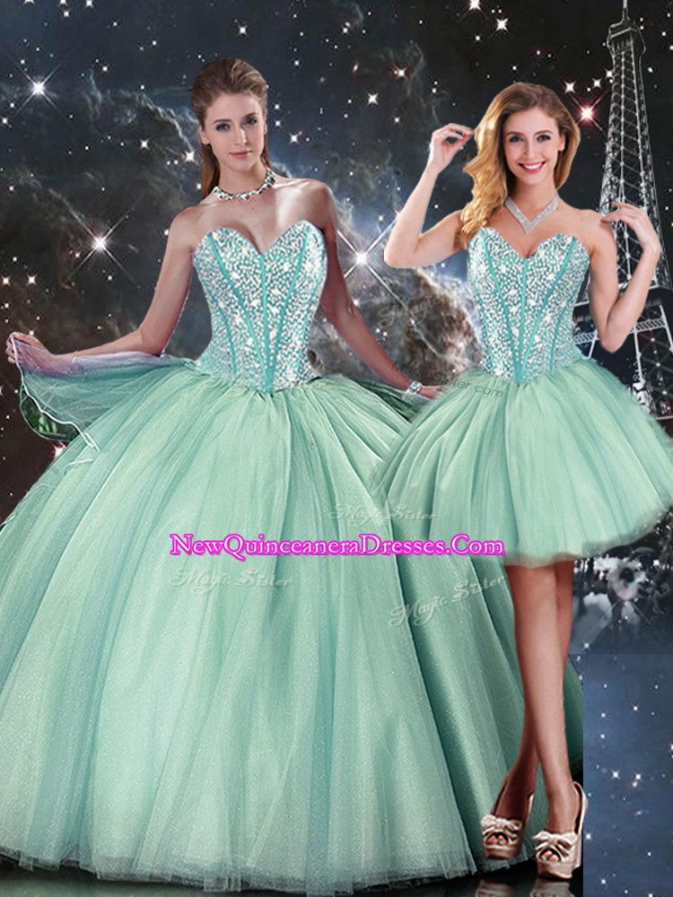 New Style Apple Green Sweetheart Neckline Beading 15 Quinceanera Dress Sleeveless Lace Up