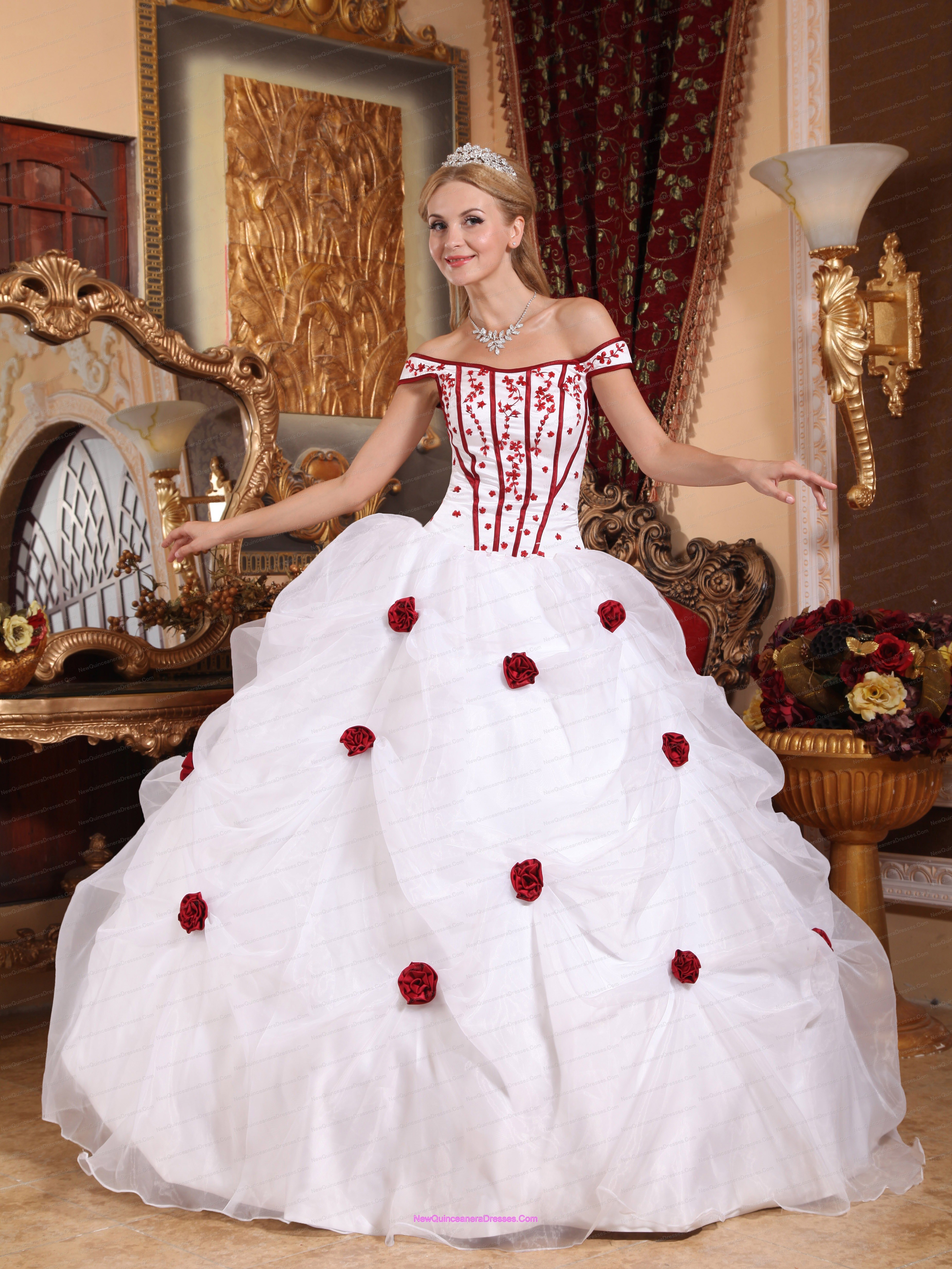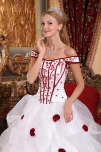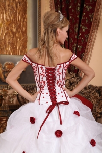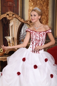 Low Price White Sweet 16 Dress Off The Shoulder Taffeta and Organza Embroidery Ball Gown