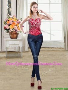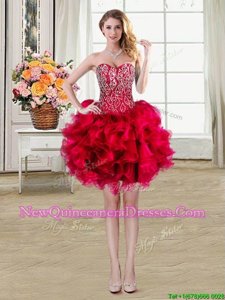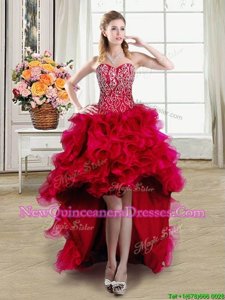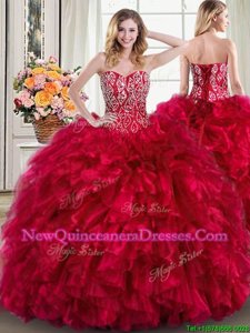 Four Piece Beading and Ruffles Quince Ball Gowns Red Lace Up Sleeveless Brush Train