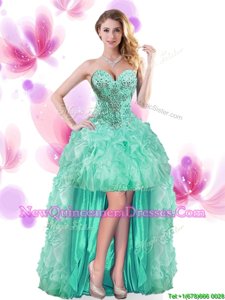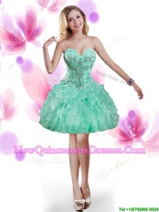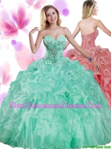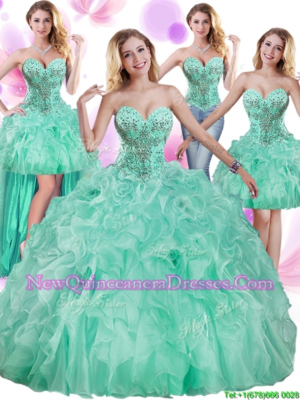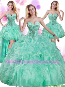 Four Piece Floor Length Lace Up 15 Quinceanera Dress Apple Green and In for Military Ball and Sweet 16 and Quinceanera withBeading and Ruffles