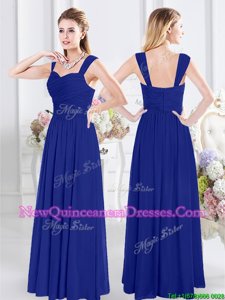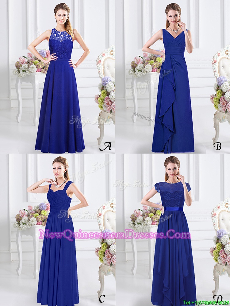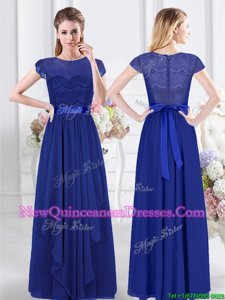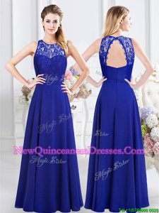 Comfortable Scoop Sleeveless Floor Length Lace Backless Vestidos de Damas with Royal Blue