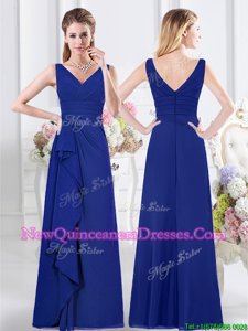 Amazing V-neck Sleeveless Zipper Vestidos de Damas Royal Blue Chiffon