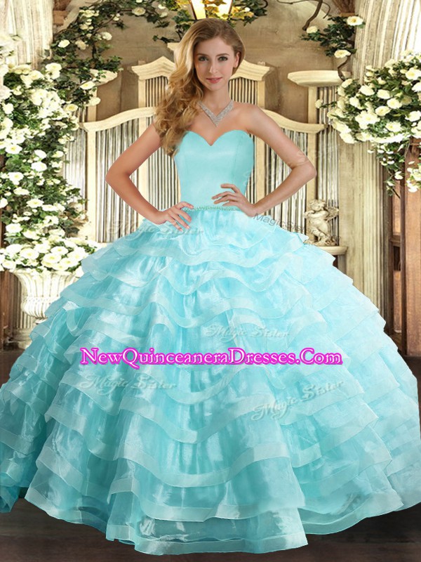 Free and Easy Sweetheart Sleeveless Organza 15 Quinceanera Dress Ruffled Layers Lace Up