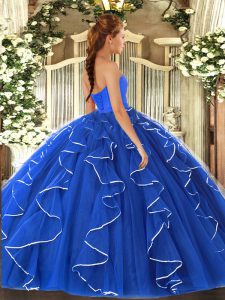 Sleeveless Floor Length Beading Lace Up Pageant Gowns with Blue