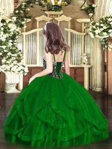 Most Popular Straps Sleeveless Lace Up Child Pageant Dress Apple Green Organza