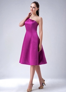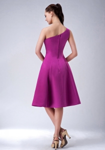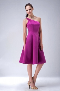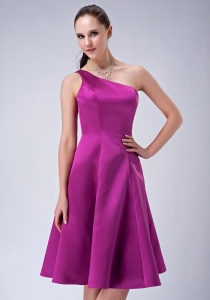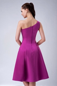 Fushsia A-line / Princess One Shoulder Knee-length Satin Dama Dress