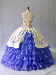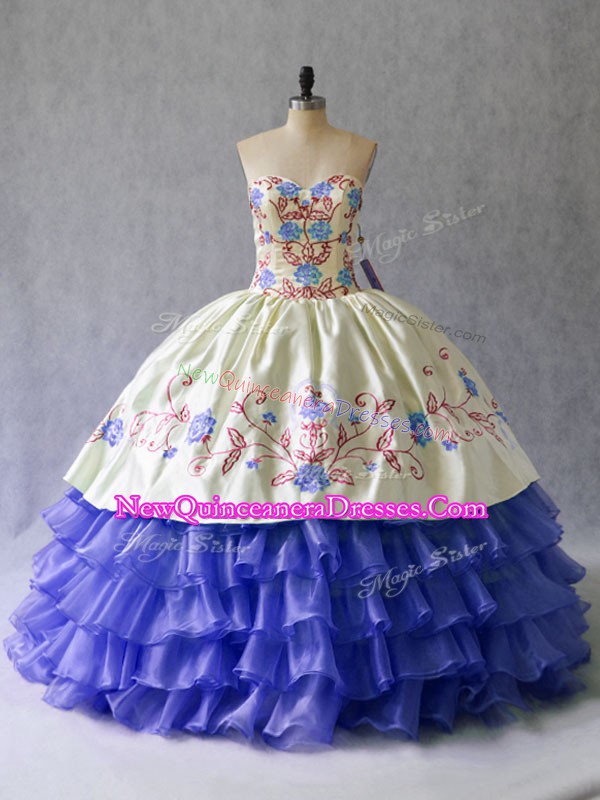 Glamorous Blue Sleeveless Floor Length Beading and Embroidery Lace Up Vestidos de Quinceanera
