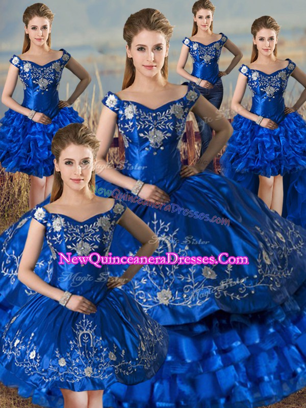 Glorious Embroidery and Ruffled Layers Quinceanera Gowns Royal Blue Lace Up Sleeveless Floor Length
