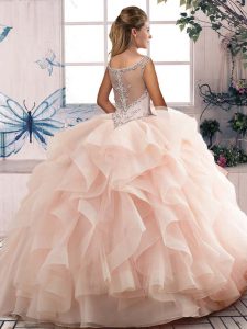 Sleeveless Lace Up Floor Length Beading and Ruffles Child Pageant Dress