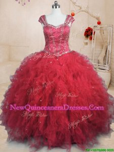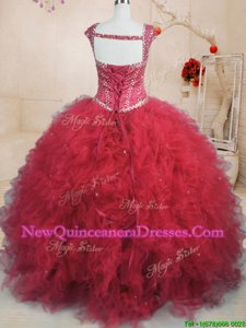 High End Square Cap Sleeves Tulle Quinceanera Gowns Beading and Ruffles Lace Up