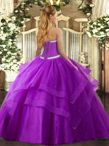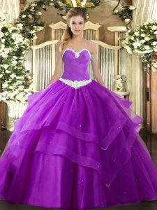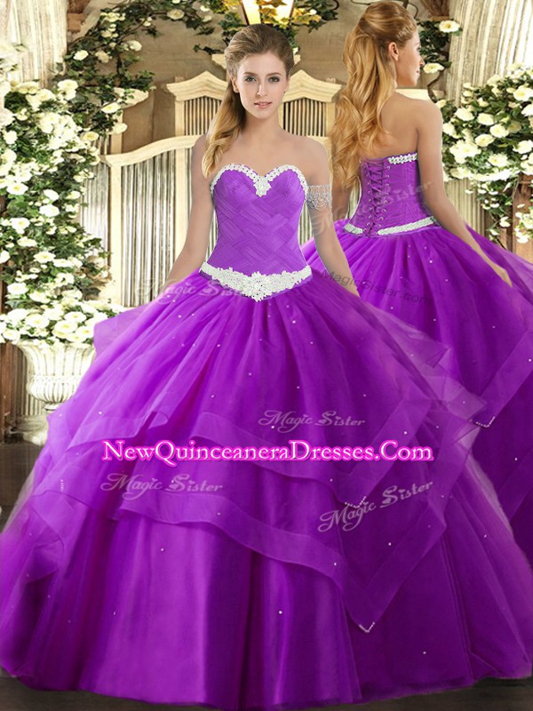 Gorgeous Purple Quinceanera Dress Military Ball and Sweet 16 and Quinceanera with Appliques and Ruffled Layers Sweetheart Sleeveless Lace Up