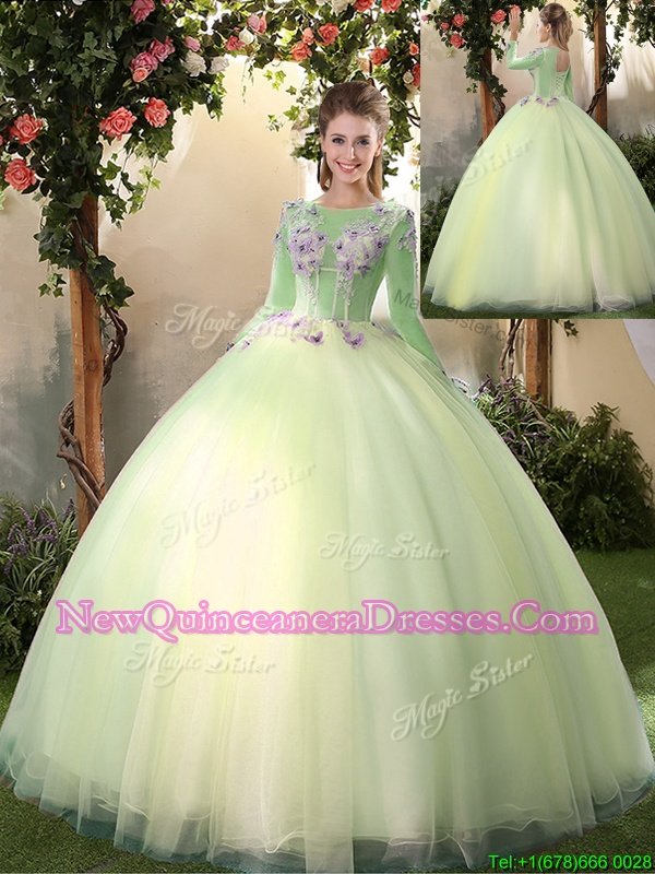 Scoop Long Sleeves Lace Up Floor Length Appliques Vestidos de Quinceanera