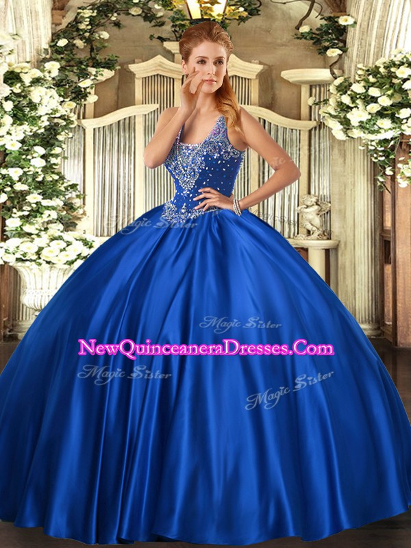 Great Royal Blue Straps Neckline Beading 15 Quinceanera Dress Sleeveless Lace Up