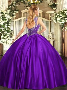Lilac Halter Top Lace Up Beading and Ruffles Quince Ball Gowns Sleeveless