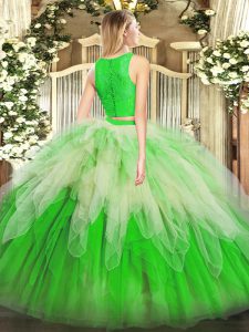 Great Scoop Sleeveless Organza Quinceanera Gowns Lace and Ruffles Zipper