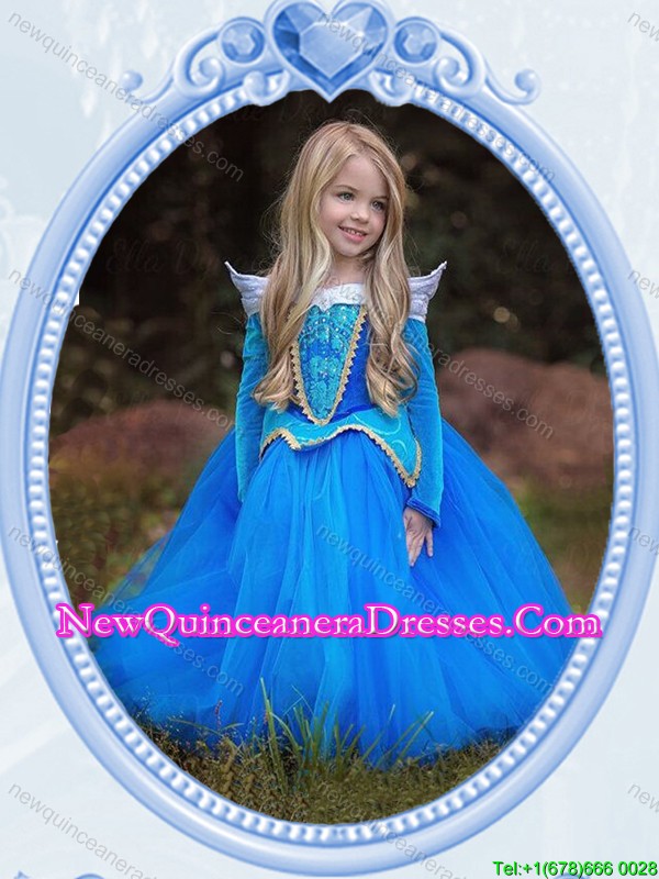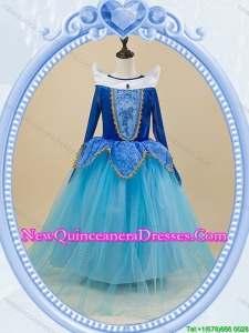 Halloween Lovely Baby Blue Little Girl Pageant Dress with Embroidery and Beading