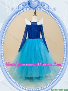 Halloween Discount High Neck Royal Blue Long Little Girl Pageant Dress with Embroidery