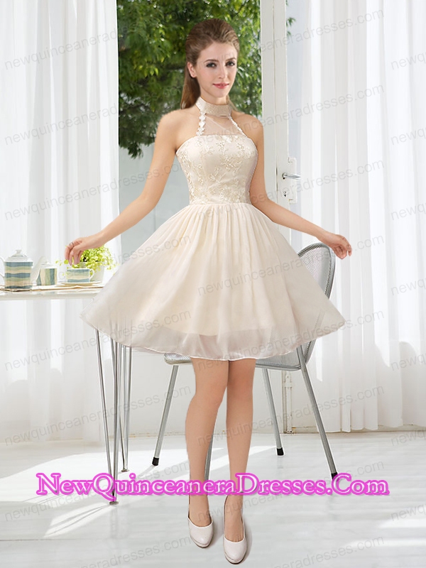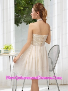 Halter Appliques Lace Up Dama Dresses in Champagne