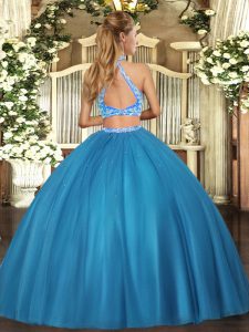 Halter Top Sleeveless Quinceanera Dress Floor Length Beading Aqua Blue Tulle