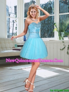 High Low Sweetheart Beading Dama Dress in Baby Blue for 2015