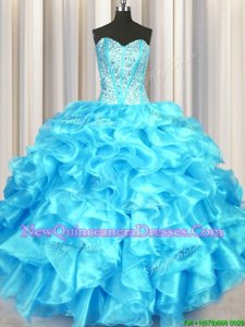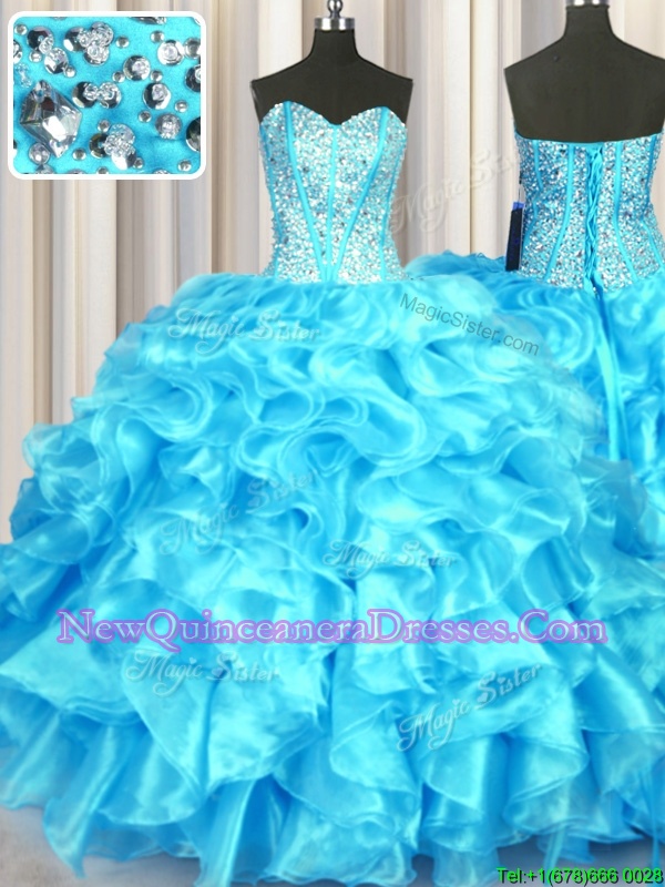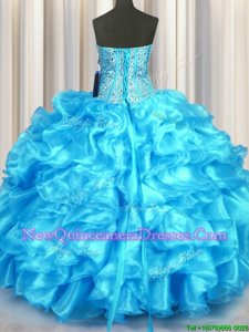 $ 238.51High Quality Aqua Blue Lace Up Quinceanera Gowns Beading and Ruffles Sleeveless Floor Length