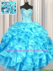 High Quality Aqua Blue Lace Up Quinceanera Gowns Beading and Ruffles Sleeveless Floor Length