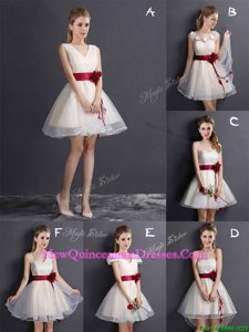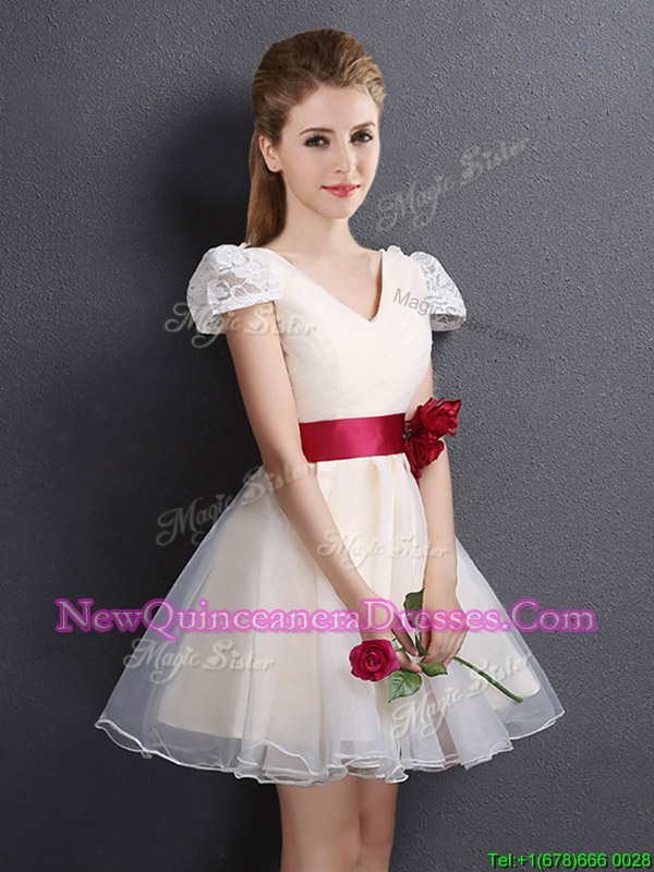 High Quality Short Sleeves Mini Length Lace Up Court Dresses for Sweet 16 Champagne and In for for Prom withLace and Hand Made Flower