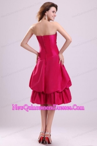 Hot Pink A-line StraplessDama Dress for Quinceanera with Knee-length