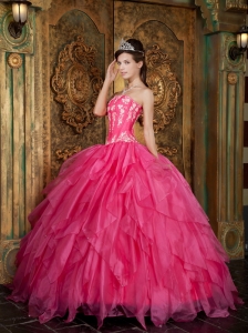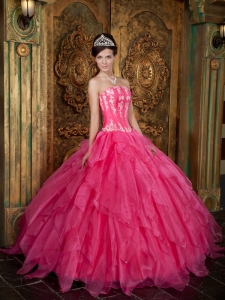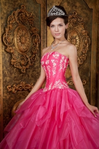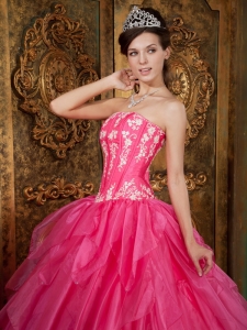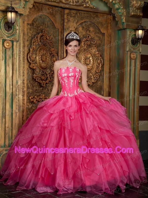 Gorgeous Hot Pink Quinceanera Dress Strapless Appliques Organza Ball Gown