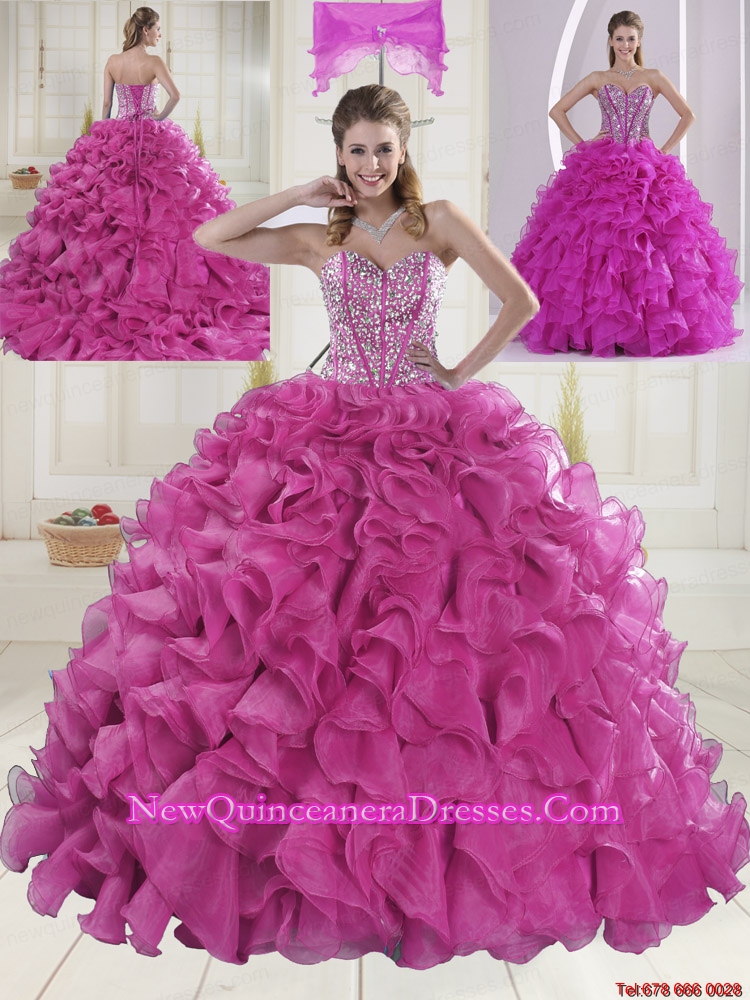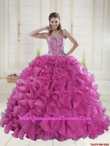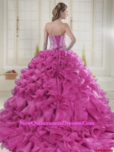 Hot Pink Sweetheart Brush Train Quinceanera Dresses in Sweet 16