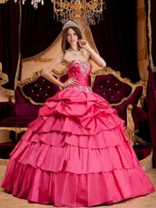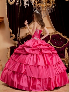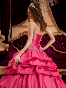 sell quinceanera gown, Pretty Hot Pink Quinceanera Dress Sweetheart Taffeta Appliques Ball Gown